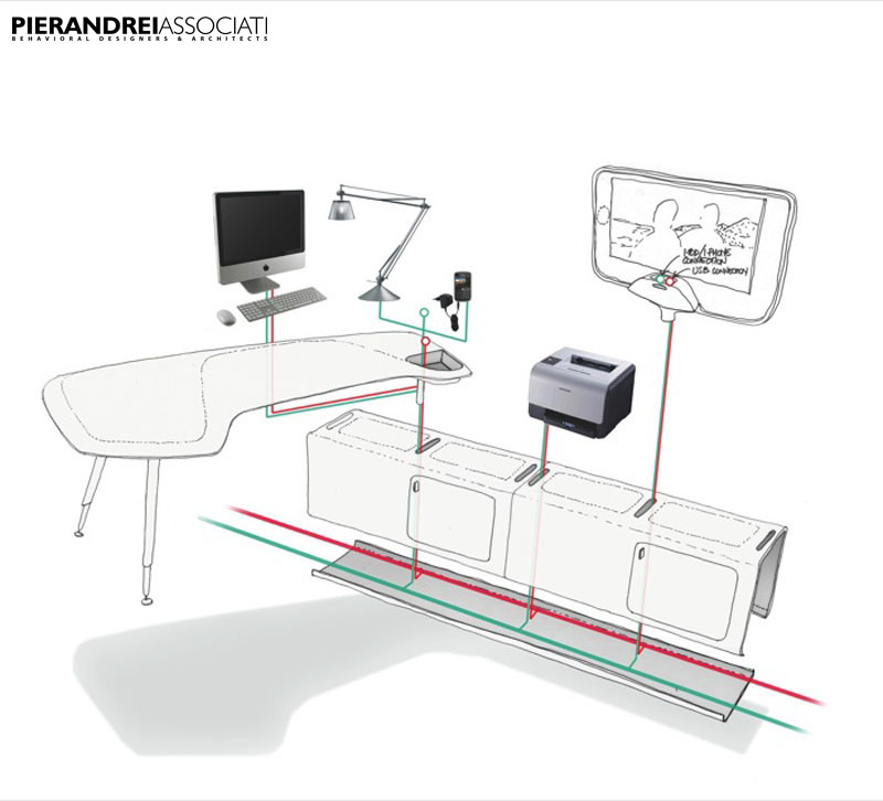 Gli spazi in cui trascorriamo le nostre giornate lavorative non sono solo luoghi adibiti alle mansioni, ma sono ambienti di scambio emozionale, culturale ed esperienziale continuo e costante. Dal gennaio 2012 contribuisco allo sviluppo di uno dei sistemi d’arredo per ufficio più innovativi sul mercato. Il sistema Beta disegnato da Pierandrei Associati per Tecno è giunto alla versione 2.0, ma il suo sviluppo è continuo e costante. Con un brevetto depositato per la distribuzione dell’elettrificazione alle varie postazioni, questo sistema consente di avere spazi sinuosi ma anche organizzati, offrendo molteplici possibilità di layout.